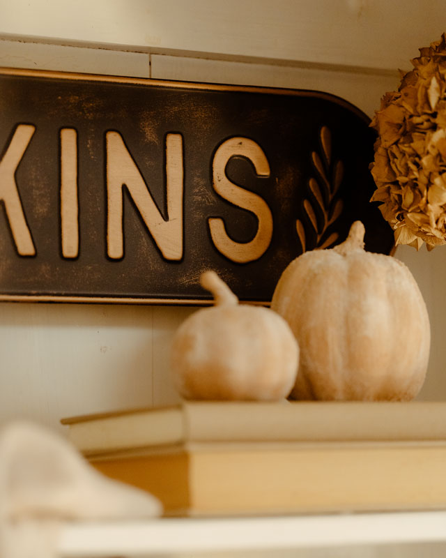 Este versátil letrero puede adaptarse tanto a decoraciones más tradicionales como a estilos más sofisticados, según los complementos con los que se combine. Úsalo en la cocina, recibidor o sala de estar, acompañado de calabazas naturales o artificiales, coronas de hojas secas y tallos de hierba de la pampa para crear un ambiente otoñal completo.
