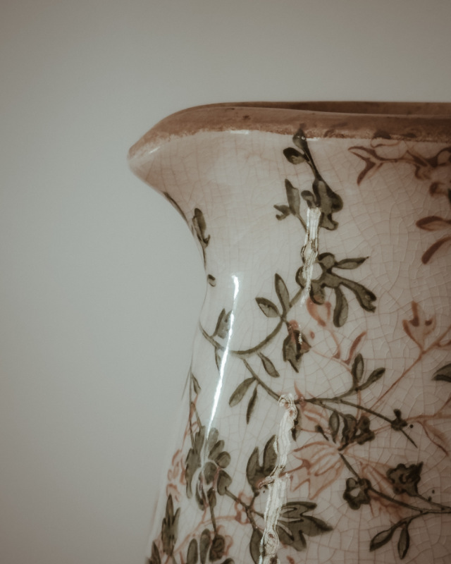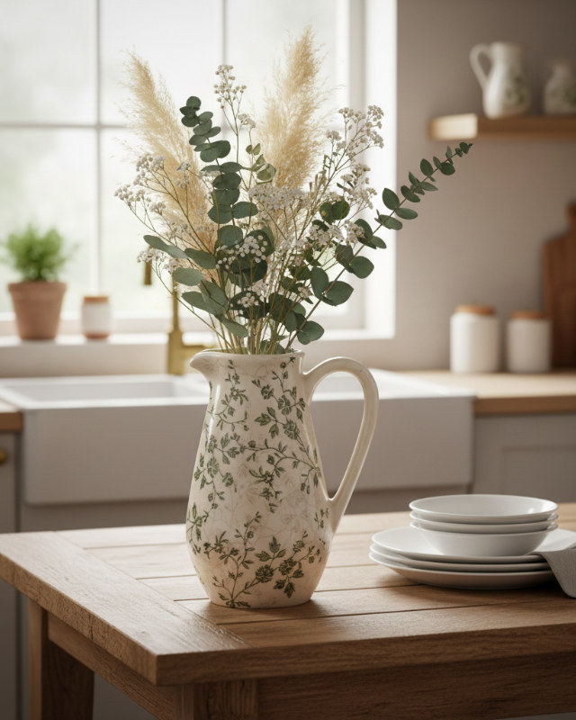 Añade un toque de elegancia rústica a tu hogar con esta jarra decorativa. Con su diseño de inspiración botánica y su delicado acabado craquelado, esta pieza es el «imprescindible» que estabas buscando para dar vida a ese rincón especial. Su estampado de flores silvestres en tonos verdes sobre fondo crema evoca la belleza de los jardines antiguos, aportando serenidad y estilo a partes iguales.